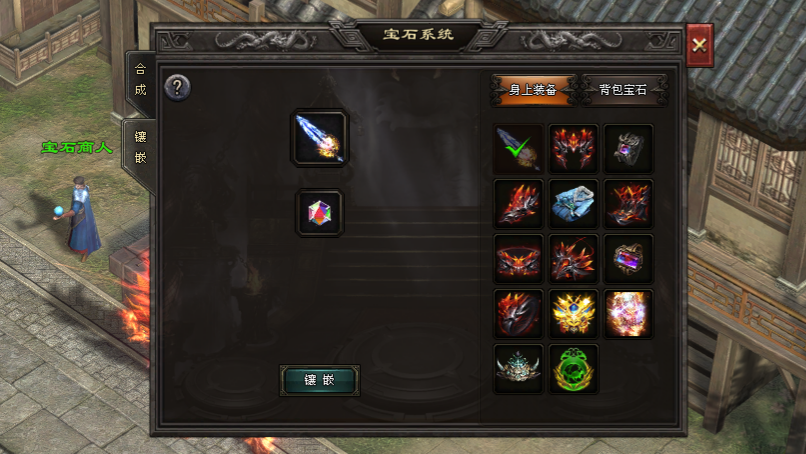 在巫山城(370,394)安全区下方宝石商人NPC处,可将对应类型的宝石镶嵌到武器、项链、头盔等指定装备部位。镶嵌后,装备会获得攻击力提升、吸血、攻速加成、施法加速等特殊属性。需注意,每件装备只能镶嵌1颗宝石。如果重复镶嵌,新宝石会覆盖原有的宝石,因此操作时需要谨慎抉择。宝石可通过击败BOSS掉落获得,也可用橙色宝石碎片随机合成。而橙色宝石碎片则是通过分解橙色装备产出的。