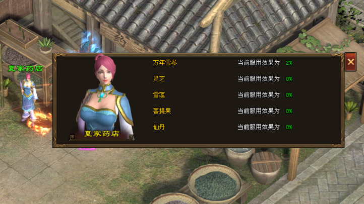 在游戏内挑战并击杀BOSS,有机会获得万年雪参、雪莲、灵芝、仙丹、菩提果这5种天材地宝。服用这些天材地宝可为角色带来不同的增益效果,可前往巫山城的夏家药店NPC处,查看当前服用天材地宝后的加成效果。